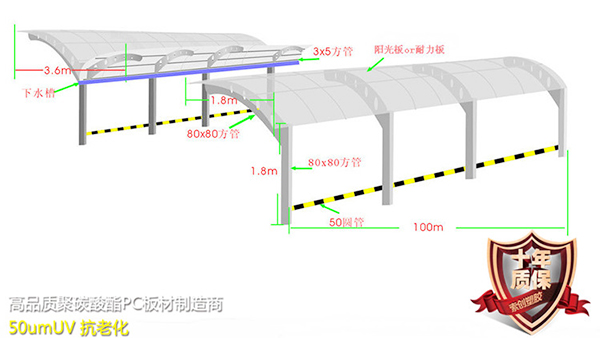 合肥新站昊天園1200平方5毫米透明耐力板車庫進出口